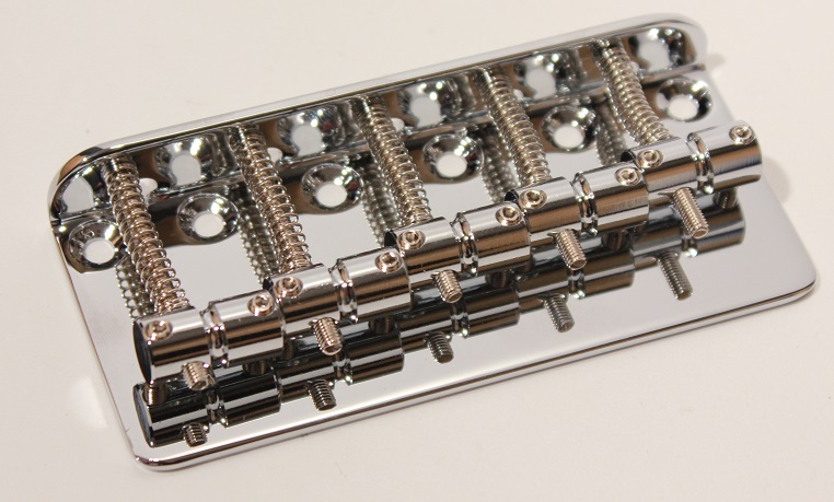 Klasyczny mostek do gitary basowej 5-strunowej. Mostek w stylu Fenderowskim-to konstrukcja doskonale znana z jazz basów i preclów, która stosowana jest z powodzeniem do dziś. Kultowy wygląd i solidne działanie to cechy, które uwielbiają fani Fenderów. Odkryte pojedyńcze siodełka dają ducha Vintage. Dostępne w kolorach chrome, black i gold. Tutaj wykończenie chrome - chyba najcześciej spotykane w instrumentach-pasuje zawsze do każdego koloru gitary.