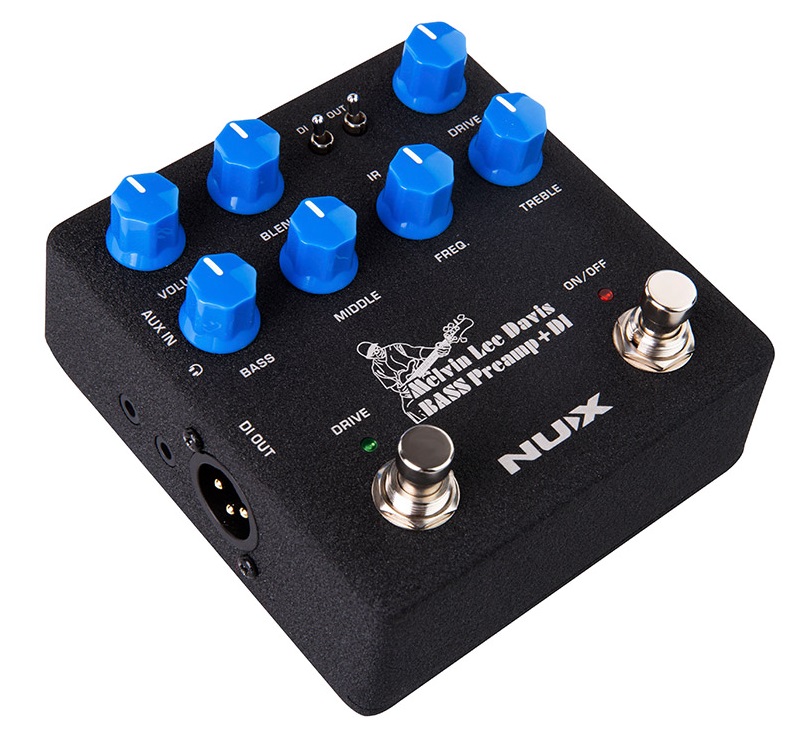NUX NBP-5 MLD BASS PREAMP DI ma mnóstwo funkcji opartych na doświadczeniu muzycznym Melvina Lee Davisa. Oferuje najlepsze elementy kreowania dźwięku, takie jak: 3-pasmowy korektor z wyborem średniej częstotliwości, drive z funkcją blendu, symulację kolumny (Impulse Response) i wbudowana redukcja szumów dzięki kontrolom Decay i Threshold.