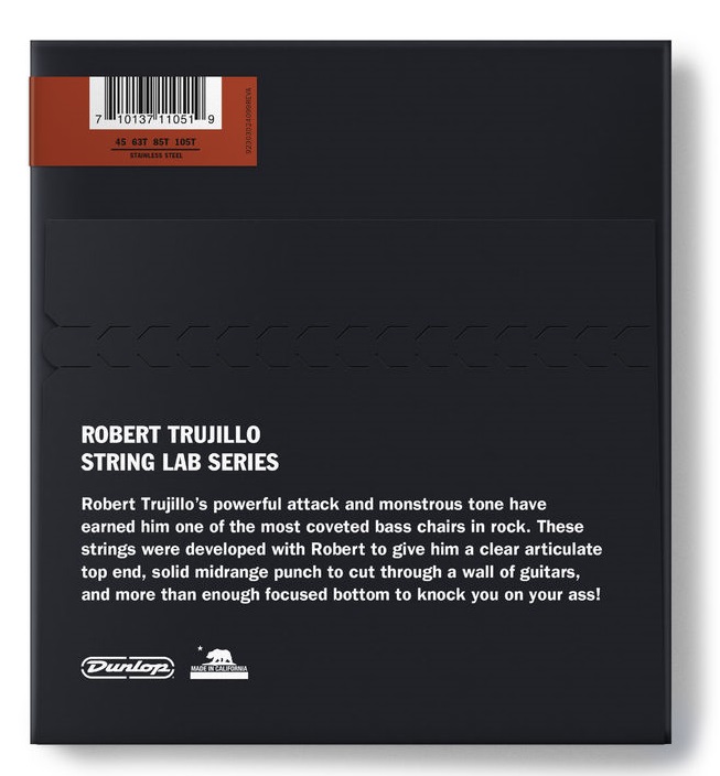 Sygnatura gitarzysty basowego zespołu Metallica- Roberta TRUJILLO. Ten charakterystyczny muzyk to osoba, której nie trzeba przedstawiać nie tylko w światku fanów metalu, ale w szeroko pojętej muzyce rozrywkowej. Set strun Dunlop daje odpowiednio mocny dźwięk i konktretny atak a przy tym dość długą żywotność. Struny, które z pewnością warto wypróbować.