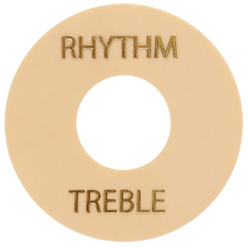 Podkładka przełącznika Gibson WA-030 Toggle Switch Washer to idealny zamiennik oryginalnej części w Twojej gitarze. Wykonana z trwałego plastiku ABS, zapewnia niezawodne mocowanie przełącznika toggle i jest dostępna w dwóch kolorach: czarnym i kremowym. Złote litery "RHYTHM" i "TREBLE" nadrukowane na powierzchni dodają estetyki. Produkt jest przeznaczony do gitary Gibson i innych instrumentów z odpowiednim przełącznikiem. Dzięki temu rozwiązaniu wymiana zużytej podkładki jest szybka i łatwa, a instrument zyskuje nowe życie.