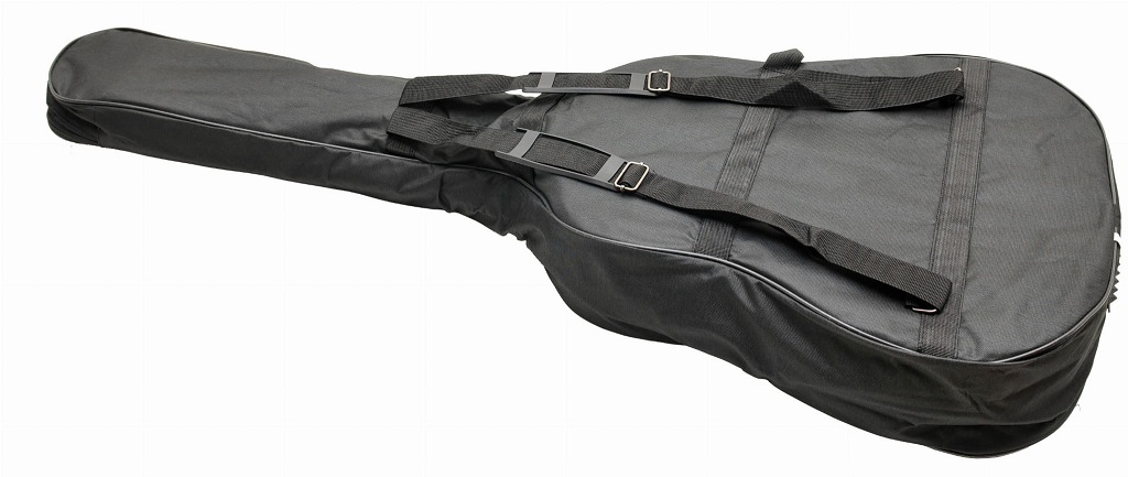 Porządny pokrowiec na gitarę klasyczną w rozmiarze 4/4. Pokrowiec charakteryzuje się mocnymi szwami, materiałem przeciwdeszczowym oraz dobrze wykonanymi zamkami. Pokrowiec wyściełany jest 5mm gąbką chroniącą przed uderzeniami czy zarysowaniami. Wyposażony jest w wygodne szelki dla łatwego transportu oraz rączkę do przenoszenia. Na przodzie nie mogło zabraknąć dość obszernej kieszeni na nuty.