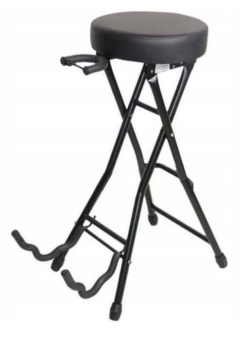 Ambra GS-300 to więcej niż zwykły stołek – w tylnej części znajduje się stojak gitarowy z wysuwanym uchwytem przytrzymującym gryf, co pozwala na bezpieczne przechowywanie instrumentu. Konstrukcja w układzie X sprawia, że stołek jest lekki, stabilny i łatwy do złożenia, dzięki czemu zajmuje minimalną ilość miejsca podczas transportu. Idealnie sprawdza się w klubach muzycznych, studiach nagraniowych, na salach prób oraz podczas tras koncertowych. Ambra GS-300 to doskonały wybór dla każdego gitarzysty, który szuka funkcjonalnego i trwałego rozwiązania.