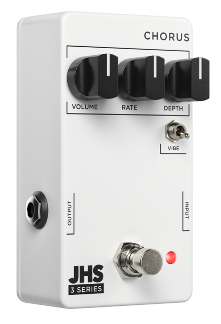 Chorus z serii JHS Pedals 3 oferuje klasyczne efekty chorus i vibrato, które oprócz neutralnego brzmienia pozwalającego na wykorzystanie ich w różnych stylach muzycznych, bardzo łatwo jest je dostosować do własnych preferencji. Pokrętła Rate i Depth współpracują ze sobą, aby użytkownik mógł swobodnie manipulować natężeniem nakładanego efektu. Przełącznik Vibe usuwa czysty sygnał, dzięki czemu uzyskasz prosty, prawdziwy efekt vibrato, bez dźwięku niezabarwionego efektem. Chorus z serii JHS Pedals 3 jest zasilany napięciem 9 V DC i zużywa 70 mA.