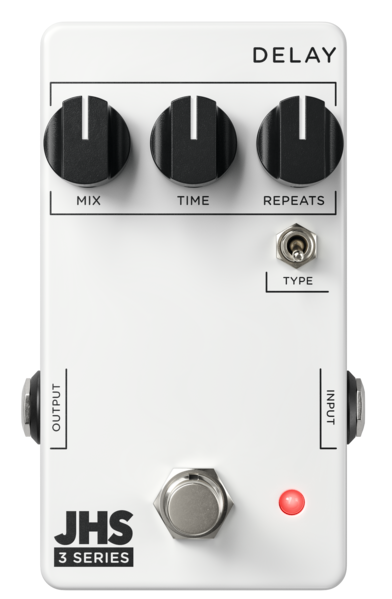 JHS Pedals 3 Series Delay pozwala wybierać pomiędzy bogatym i ciepłym lub czystym i nieskazitelnym echem. Prosta konstrukcja jest łatwa w użyciu, a jednocześnie oferuje szeroki zakres opcji brzmieniowych. Ten delay zapewnia czas opóźnienia od 80 ms do 800 ms. Przełącznik Type umożliwia wybór między wyraźniejszym opóźnieniem z dźwiękiem cyfrowym, a ciemniejszym opóźnieniem z dźwiękiem analogowym.