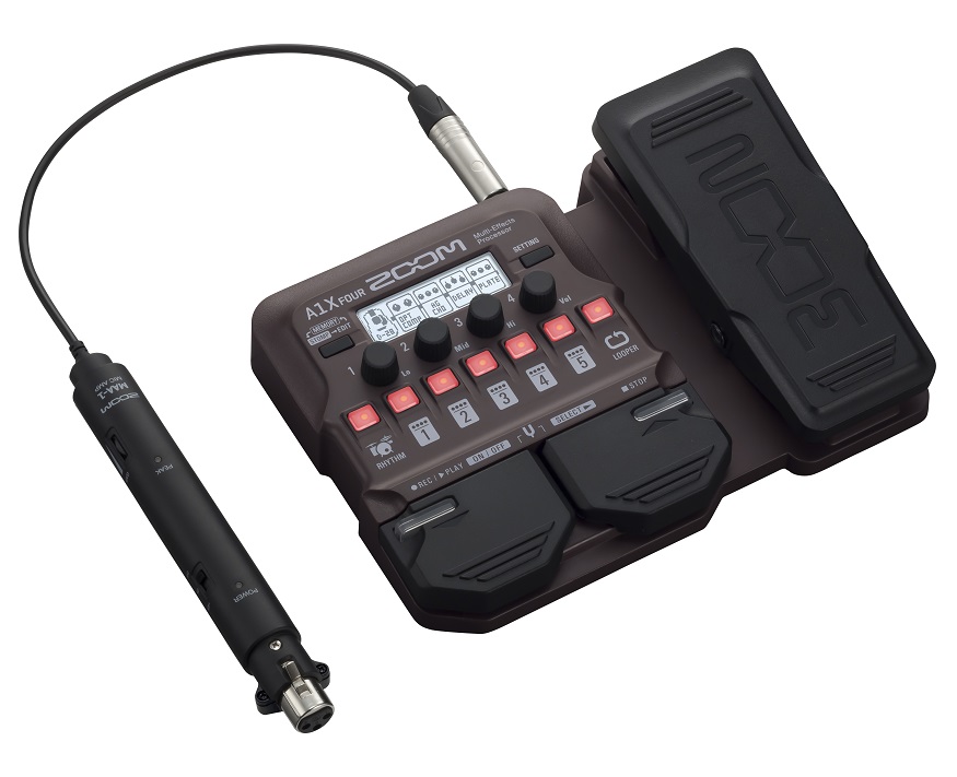 • Zoom A1X Four to efekt z nowej serii marki, przeznaczony do instrumentów akustycznych. I nie mamy tu na myśli tylko i wyłącznie gitary czy skrzypiec. Urządzenie świetnie współpracuje również z instrumentami dętymi np saksofonem, trąbką czy też z harmonijką ustną. Jest to pierwszy procesor Multi-Effects specjalnie zaprojektowany do różnych instrumentów smyczkowych i dętych.