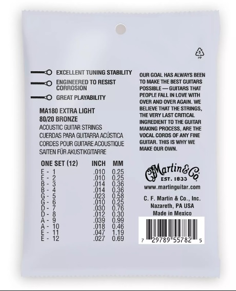 - Stop 80/20 Bronze oferuje ciepłe, miłe i łagodniejsze brzmienie niż phosphor bronze. Zapraszamy do zapoznania się z całą ofertą strun marki Martin w sklepie Guitar Center. Set do 12-strunowych instrumentów extra light 10-47
