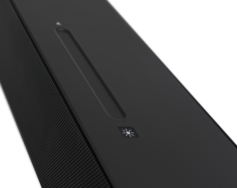 Niezależnie, czy szukasz sprzętu do słuchania muzyki, grania w gry czy oglądania filmów, znajdziesz odpowiedni tryb dźwięku. Obok przełącznika trybów znajdziesz też przycisk zmiany źródła, który umożliwia zmienianie go przy używaniu wielu wejść. Na górze urządzenia znajdziesz też panel dotykowy, który umożliwi zmiany głośności i kolor diod LED RGB. Są one umieszczone na rogach i świetnie komponują się z resztą urządzenia.