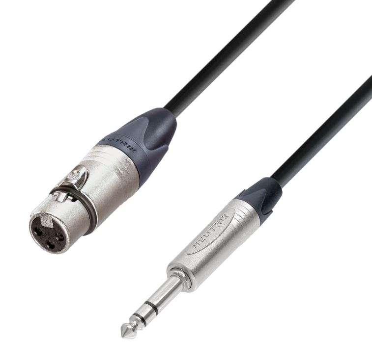 - Symetryczny kabel wyposażony w żeńskie złącze wtyczkowe XLR i wtyczkę jack stereo 6,3 mm