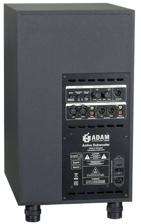 Obie wersje posiadają układ bass reflex z wylotem tuby skierowanym w dół, którego kształt i rozmiar zapobiegają niepożądanym szumom wywoływanym ruchami powietrza. W większych pomieszczeniach albo gdy chcemy zwiększyć poziom głośności można łączyć razem, w łańcuchu większą ilość subwooferów ADAM. Wszystkie wejścia i wyjścia dostępne są zarówno na złączach XLR i RCA [cinch].
